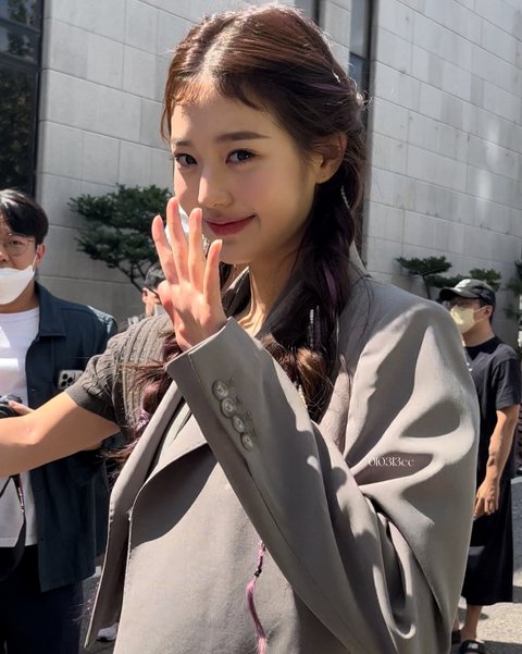 정장에 검스 입고 뮤뱅출근한 장원영
