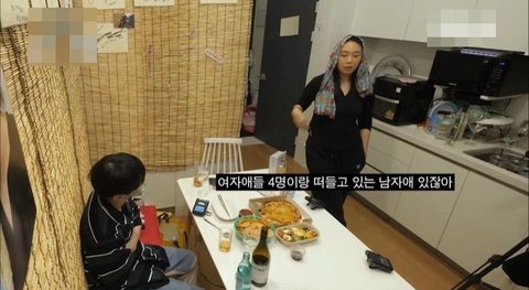 여자애들 4명이랑 수다 떨고 있는 남자애 1명