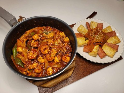 오징어새우볶음과 스팸두부김치~