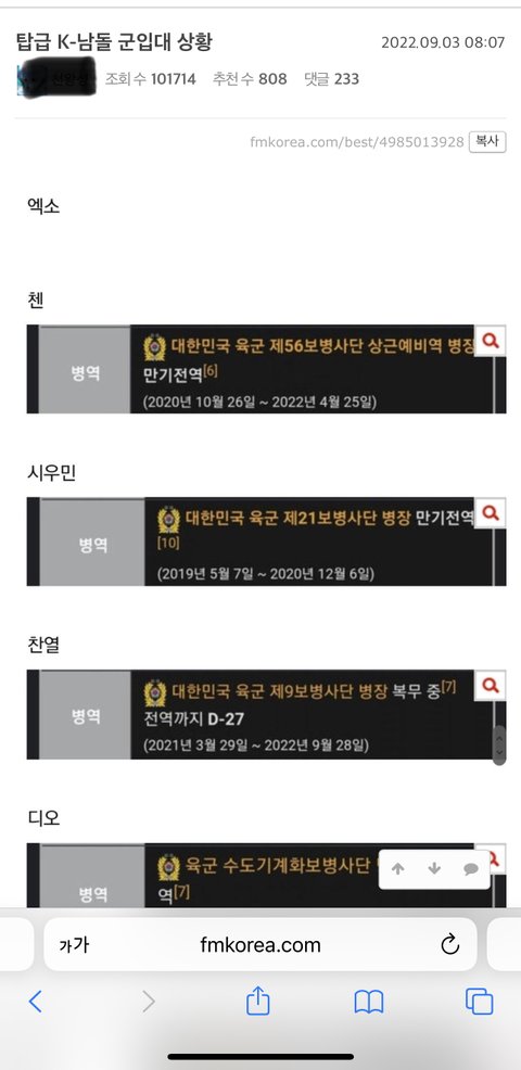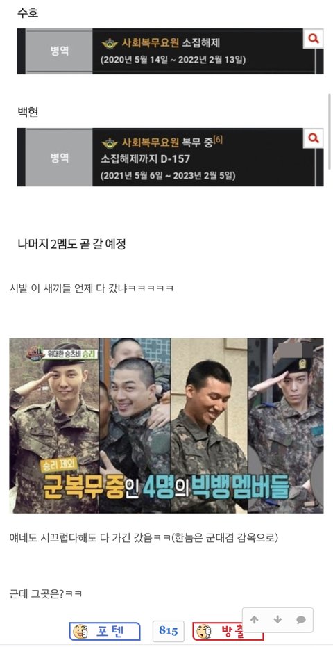 실시간 남초에서 군대로 bts까는 비교글 올린 SM팬