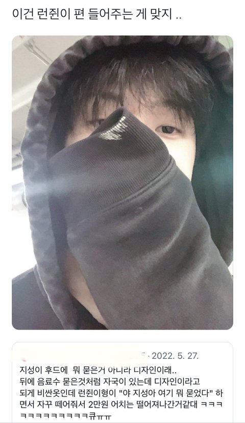 나도 보고 순간 엇 애기 소매에 뭐 묻은거징? 이랬는데...