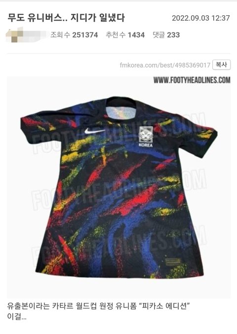 이미 남초에선 무도유니버스라고 찬양중임ㅋㅋㅋ저기에 국대로고말고 피마원x나이키 콜라보처럼 나왔으면 예뻐서 완판될듯