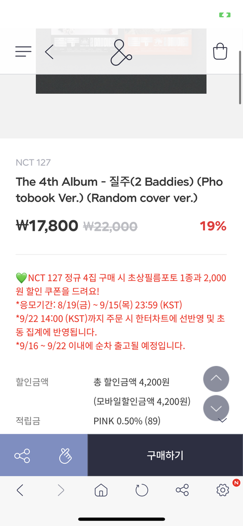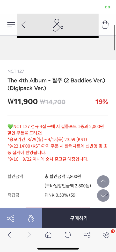슴스에서 주는 특전 포토백 디지팩 둘다 똑같은 거야?