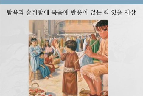 비유하건대 아이들이 장터에 앉아 서로 불러 이르되 우리가 너희를 향하여 피리를 불어도 너희가 춤추지 않고 우리가 곡하여도 너희가 울지 아니하였다 함과 같도다