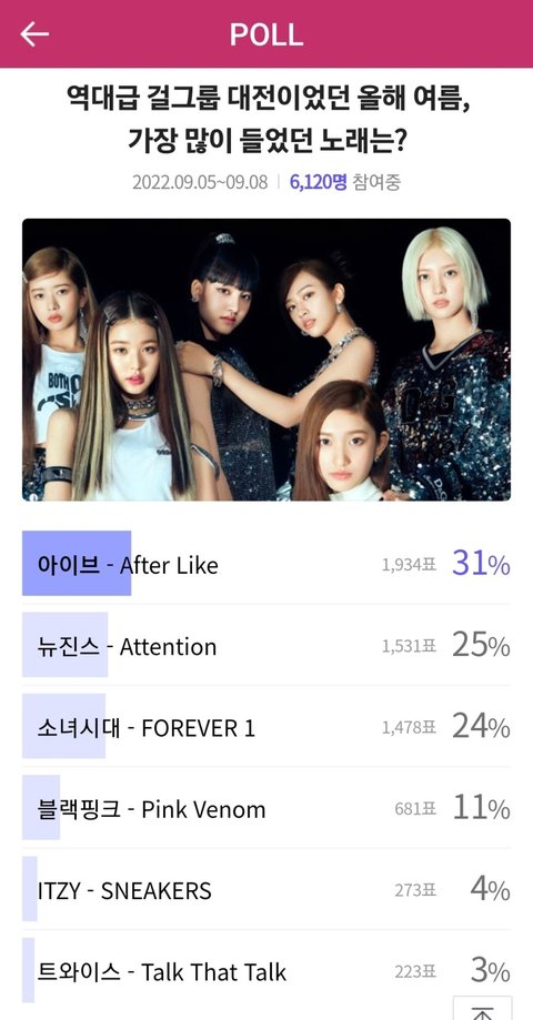 네이버에서 올해 여름 노래 투표했는데