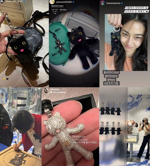 까만 고양이 키링은 컴포트서울 김희준 디자이너가 디자인한 거고 원래 그분은 연옌들 많이 초대해서 키링 선물함. 지디랑 제니도 선물받음. 사진도 컴포트 서울 행사에서 찍은거고