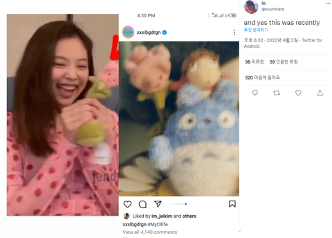 트위터에서도 잘못 퍼지고 있는데, 제니가 21년 2월에 로제한테 선물한거고 지디는 일주일 전에 다른 거 올림. 1년 반 차이남. 이런 거는 되게 흔한 템이기도 하고.