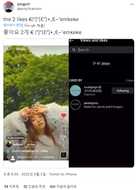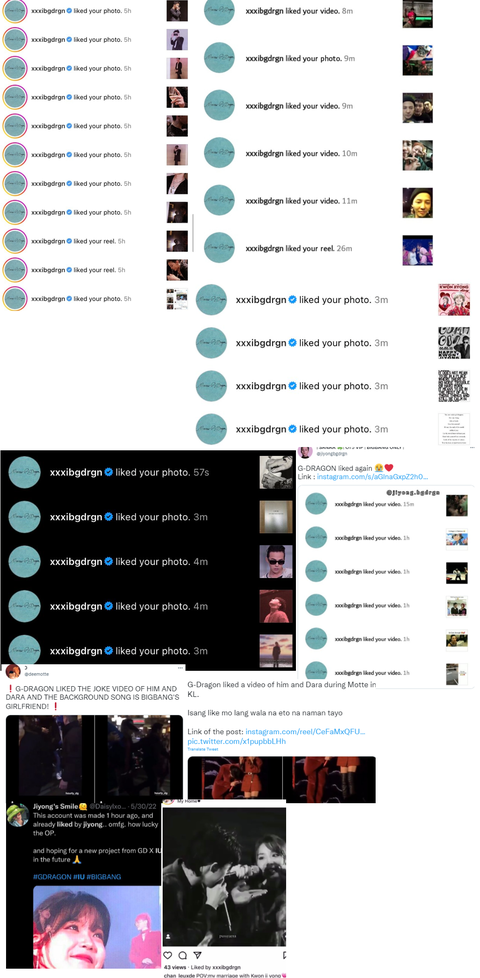 지디는 원래 자기 태그된 인스타 다 좋아요 누르고 다님. 내용도 안 보는 것 같음. ot4 ot5, 아이유 다라 망붕글도 다 그럼. 해외팬들 맨날 자기 인스타에 지디가 좋아요 누른 거 자랑하는 스샷 올림.