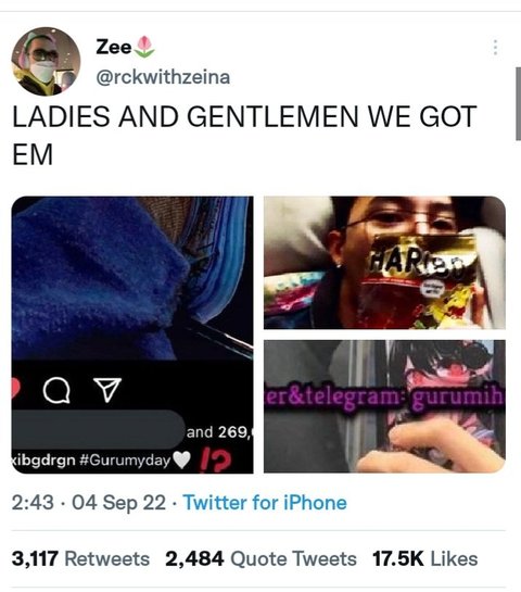 외퀴들이 2019년 10월에 지디가 하리보 젤리 사진 올린 거랑, 21년에 지디가 구름 사진 올리면서 gurumy / 구루미데이 라고 캡션에 쓴 거,