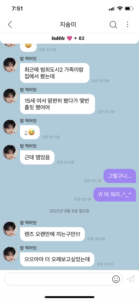 나 답장 왜저렇게 했지 ㅋㅋ 더 오래됐는데 날짜 날라가서 빡침