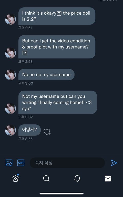 인증동영상에 finally coming home!! <3sya 이라는 문구를 적어 찍달라고 요청하는 게 맞는걸까? 진짜돌겟네..아니첨엔 지 닉네임 써달라며-_-