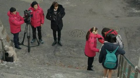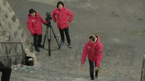 빙판길에 넘어지는 사람들을 찍어야 되는데