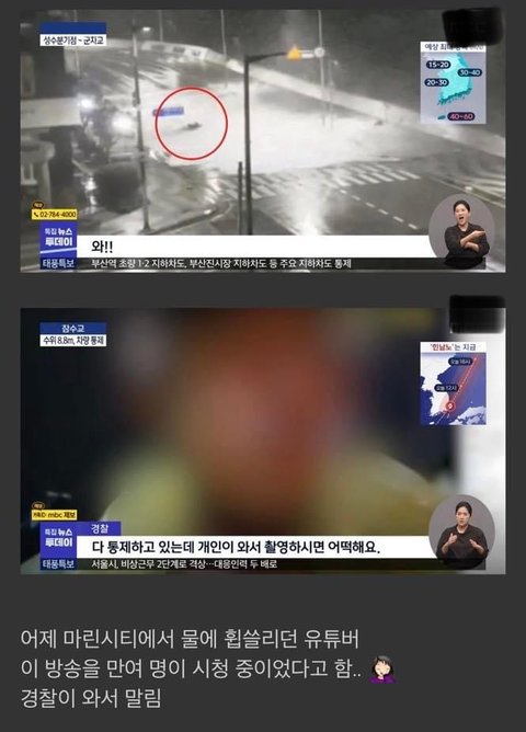 서울에서 걱정되는 마음에 새벽같이 뉴스보는데 이런 닌간들은 정말 극혐이야. 이 닌간 때문에 출동한 경찰은 무슨 죄야. 이런 유투버 방송 시청하는 1만여명의 시청자들도 정말 한심하다. 아닌건 아니라고 따끔하게 한소리 못하고 동참하는 짓거리 정말 혐오스러워.