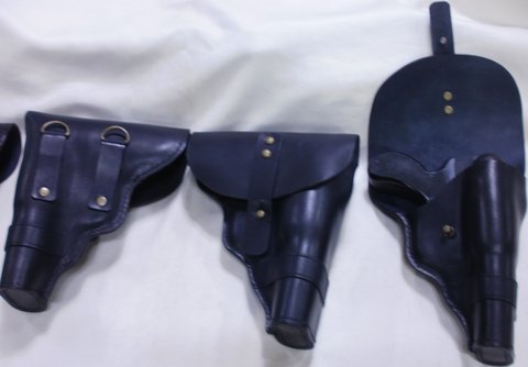 베지터블 가죽에 검정색으로 염색하여 수작업으로 제작한(영화,드라마 등 소품) 2구용 핸드메이드 가죽 신호탄 발사기 케이스입니다.(마디샤)