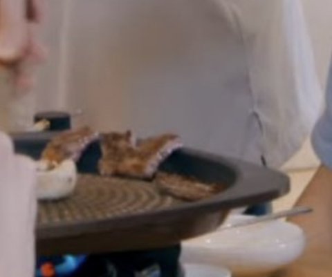 잘 놀고 밥상 앞에서 얌전하게 고기 기다리는