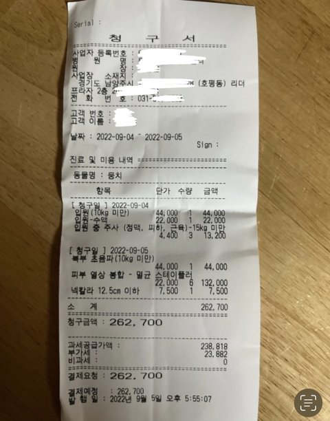 그리고 시간 지나서 오전 11시에 손님께 연락을 받았어요. 합의금으로 500만원을 요구하셔서, 저도 강아지를 키우는 입장이구, 다친 강아지와 주인분도 얼마나 마음이 아프실지 알기에 알았다고 말씀을 드렸습니다. 그러나 지금 경기가 좋지 않아서 금전적으로 많이 힘든 상황입니다... 당장 돈이 없어서 300만원을 먼저 드리고, 나머지 200만원은 9월 안으로 해결해보겠다고 말씀을 드렸어요. 저도 이런 일을 처음 겪는 입장이라, 이후에 남편과 변호사와 상의를 한 후에 다시 연락을 드리려고 했으나, 수술 당일에는 연락을 차마 못 드렸습니다.