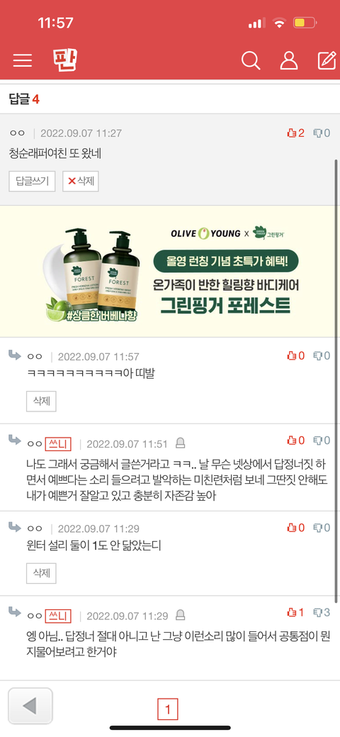 이악물고 아닌데? 너 못생겼지? 너 그래서 연애못하는거지?? ㅇㅈㄹ 떠는게 훨씬 더 추해보여....