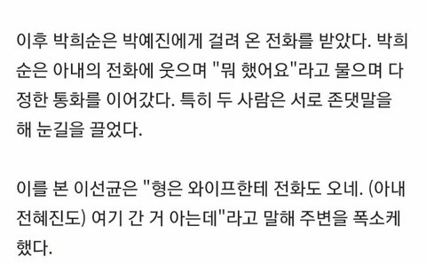 그리고 예능 <여름방학>에서박희순이 아내 박예진이랑 통화하는거 보고 ㅋㅋㅋㅋ