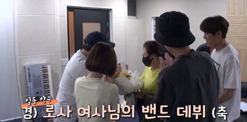 밴드 데뷔 축하 꽃다발을 건넨 김대명