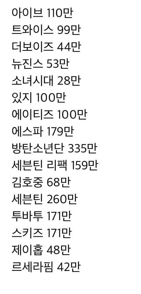 참고로 방탄이 예전에 100만장 팔때 스타디움 투어 돌았음..