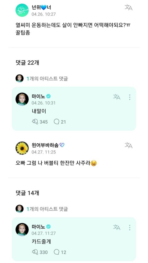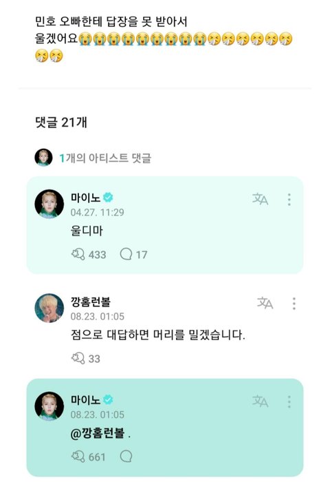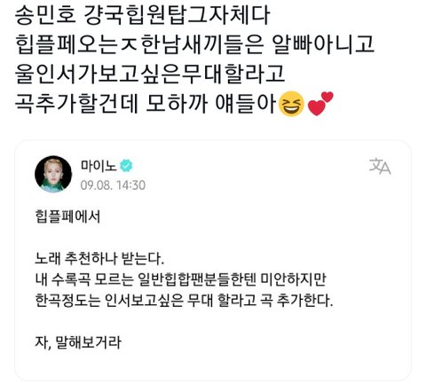 아 ㅠㅠㅠ 개능글맞아 개좋아 진심…. 송민호는 ㄹㅇ 팬아저임