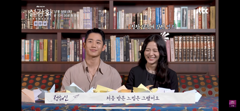 사진은 정해인님이 지수님 첫만남 때 어땠는지 말하니까 눈 땡그랗게 뜨고 웃는 거..