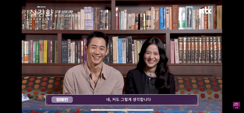 이건 지수님이 정해인님 칭찬하고 정해인님 빤히 보다가 정해인님이 감사합니다하니까 활짝! 웃는 거..