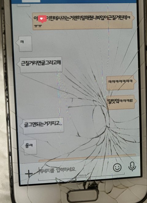 화면깨진것도 웃기네ㅋㅋㅋㅋ 킹받아서 주먹으로 내려친것같음ㅋㅋㅋㅋㅋㅋㅋㅋㅋㅋㅋ