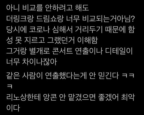 리노 단독연출 아닐거같았음 ㅌㅇㄴ콘은 팀이랑 곡에대한 이해가 보이게 연출했는데 리노일리가 없음 곡이해도 제로인련