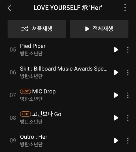 18년도까지만해도 수록곡에 hot이 붙혔는데 지금은 사라진듯