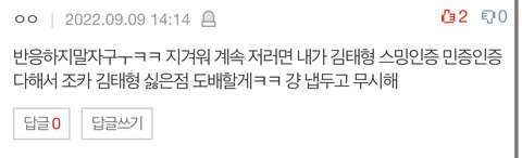 재밌겠다 민증인증좀 해줘 몇살 처먹구 여기서 죠랄하나 좀 보게ㅠㅠ