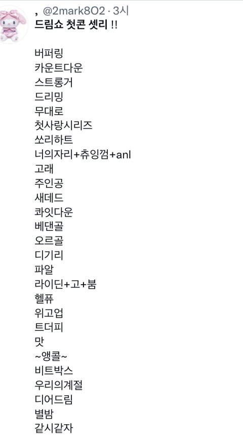 22곡중 6곡을 관심도 없는 멤버들 솔로로 때워버리고 VCR로 시간 땜빵하고 드림은 세시간동안 33곡 풀로 때려버리고 멤버들 열망과 의지자체가 차원이 다름