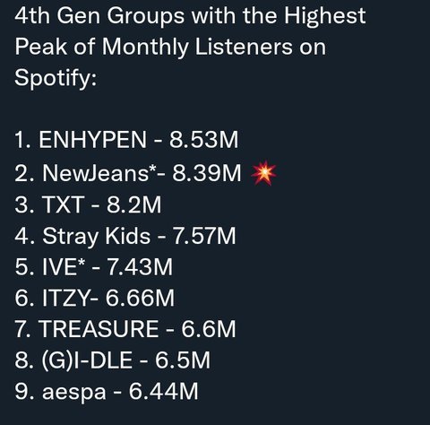 4세대에는 투바투 엔하이픈 뉴진스 르세라핌이 있는데 지금 해외성적도 좋고 뉴진스 이번에 뜬걸로 봐서는 기대해봐도 좋을듯