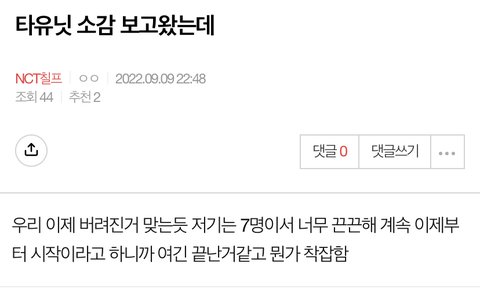 우리 이제 버려진거 맞는듯 저기는 7명이서 너무 끈끈해 계속 이제부터 시작이라고 하니까 여긴 끝난거같고 뭔가 착잡함