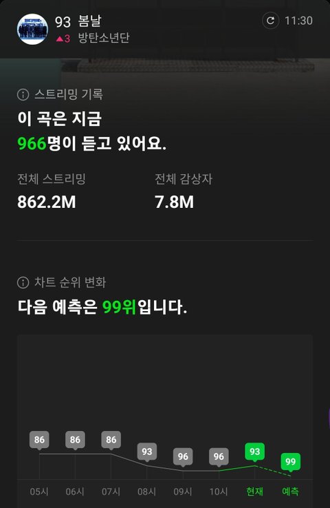 애들아ㅠㅠㅠ 봄날 예측 99위야