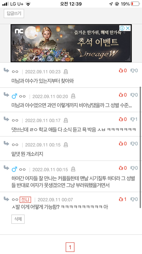 결시친 돌려봄 ㅋㅋㅋ 개웃긴다 한남들아 주제 파악 좀 해