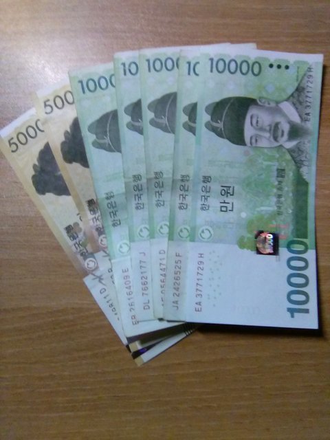 친할아버지 댁에서 받은 10만 원(5만 원 한 장+만 원 다섯 장)과 외할머니 댁에서 받은 5만 원 한 장
