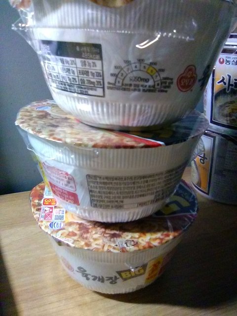 그리고 오는 길에 집 앞 편의점에서 2+1 세일하길래 사온 컵라면들(저 육개장 사발면 존맛임.. 맛도 맛인데 가격대비 양이 혜자)