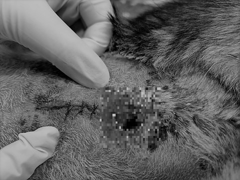 보시다 시피 일부 상처는 봉합되지 않았고 복부 피부는 썩어 구멍이 났으며 봉합 한 부위에서도 고름이 줄줄 흐르고 있는 상황이였습니다.