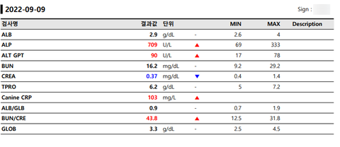 다행히 9/12 현재 강아지는 2박 3일의 입원을 통해 염증수치도 많이 낮아 진 상태로 집으로 귀가 하였습니다.