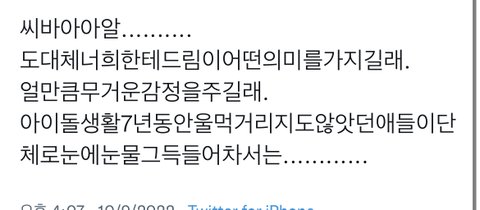 저 트윗 보고 갑자기 장충콘 생각나서 엔딩멘트 보고옴 그러다 바로 한라봉님 플리 뜨고 디어드림 들으니까 또 울어... 4일 동안 하루에 5번씩 울컥하고 3번은 우는 거 같아