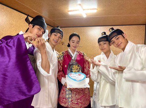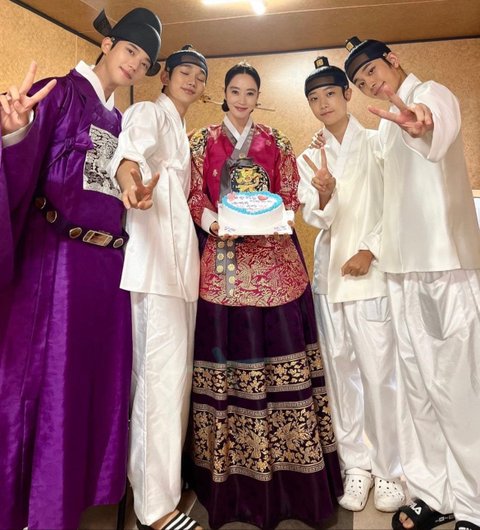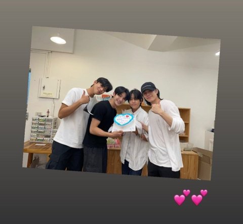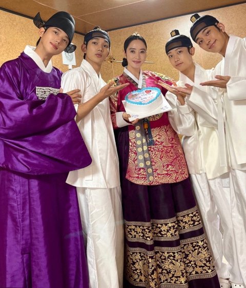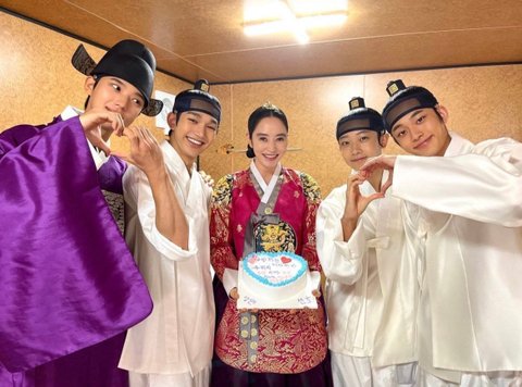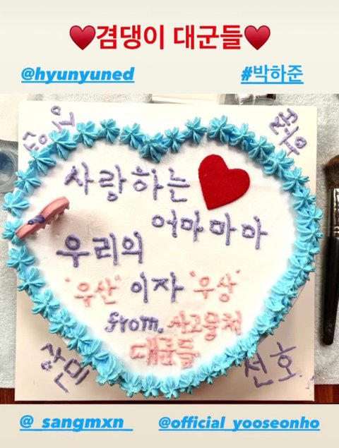김혜수의 생일을 맞아서 모여서 케이크 만든 아들 역 배우들