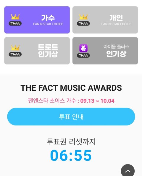팬!앤스타 앱 깔아야함 상대쪽에 예전부터 블랙등급이신 팬분들 많아서 우린 유입 필요하고 일찍 시작하는게 좋음 인기상은 순수 팬투표니깐 말모해 상 주자고 ㅎㅇㅌ