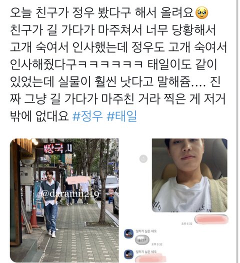 정우 태일 목격담 떴다 오늘!