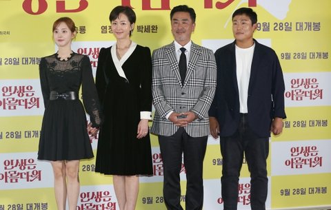 13일 영화 '인생은 아름다워'(감독 최국희)의 언론배급시사회가 열렸다. 이 날 최국희 감독을 비롯해 배우 류승룡, 염정아, 박세완이 참석했다.