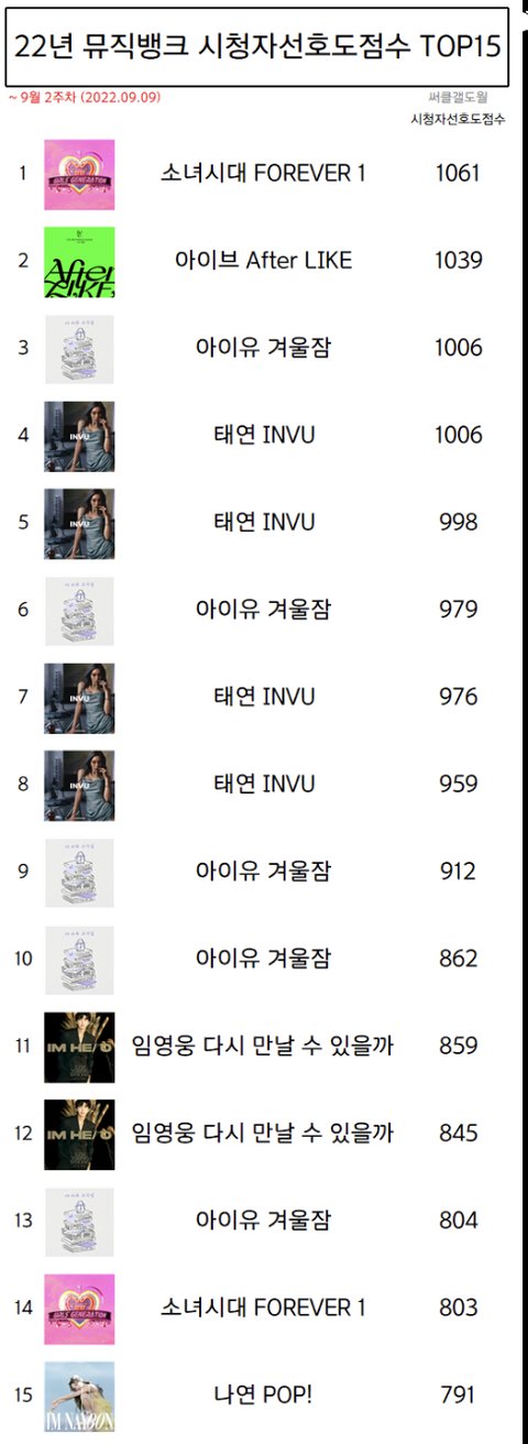 이런 글은 보통 비추가 추천갯수라 보면됨 ㅋㅋㅋ 아니 체감이 안되는데 시청자선호도 9개월 된 그룹이 2등 찍고 노래방 챠트에서도 상위권들을 찍고 잇나?