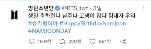 알엠 생일때 슈가 메세지가 뭔가 의미 심장함