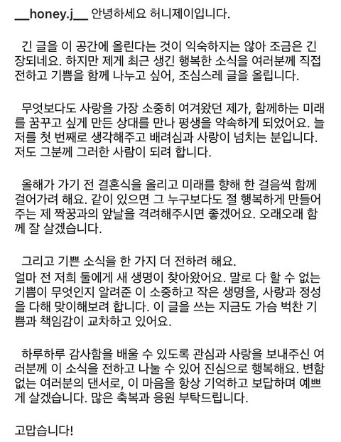 허니제이 전부터 결혼하고 싶다구 하지 않았나? 잘됐네.