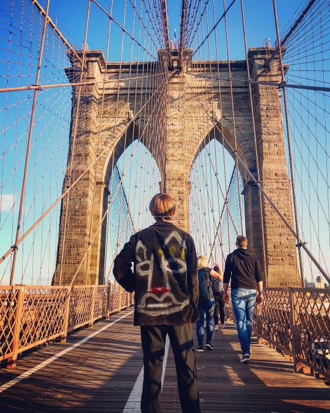 바스키아와 에곤쉴레의 영향을 받았다고 언급한 직접 커스터마이징한 자켓