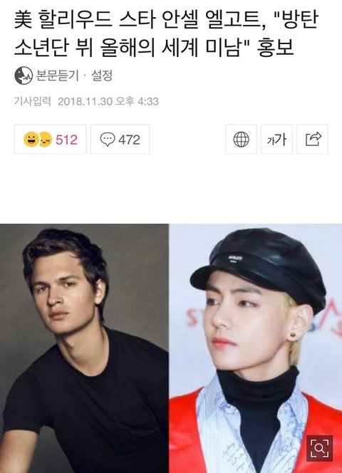 팬들에게 세계미남 투표를 뷔에게 하라고 독려함